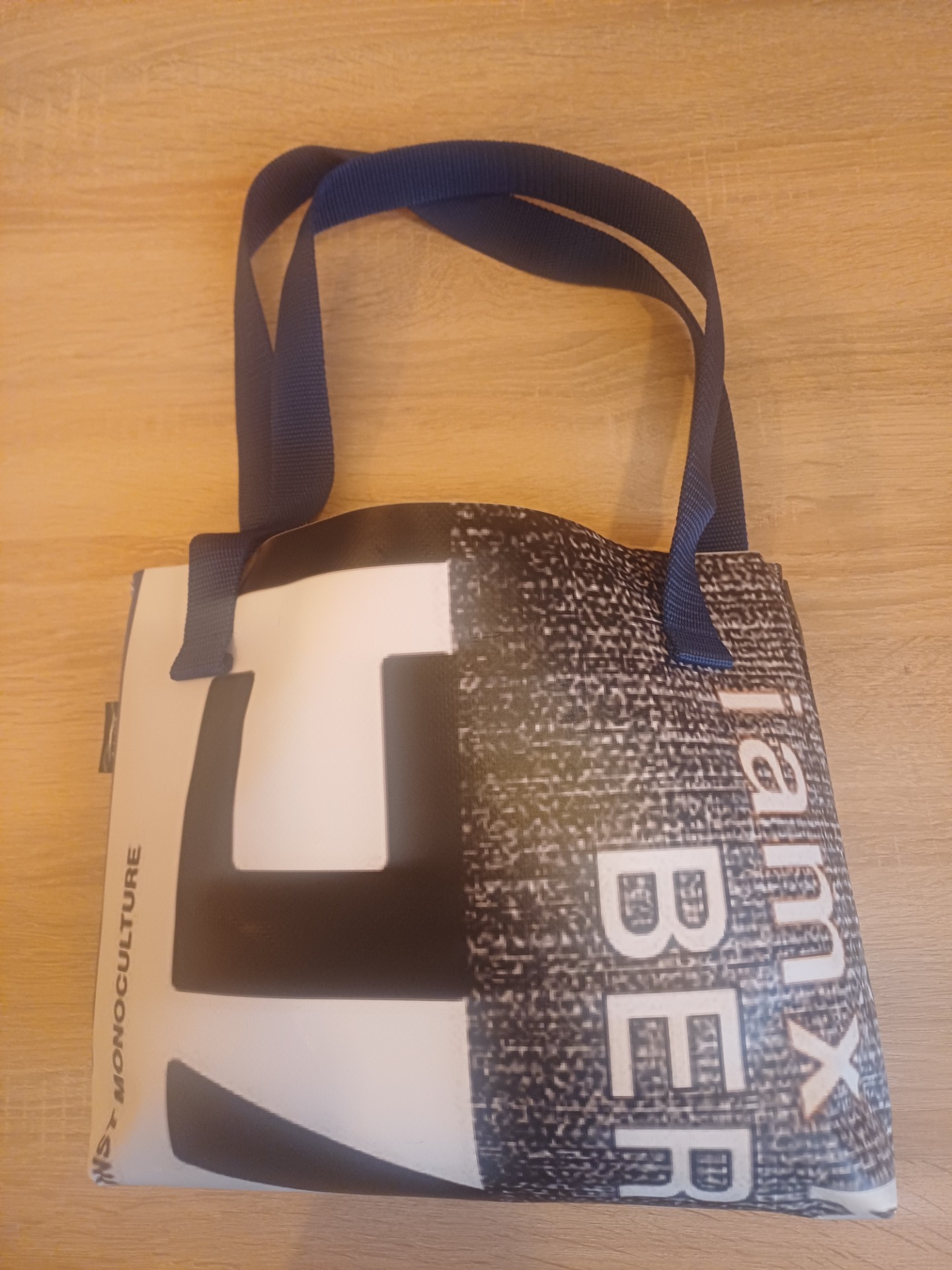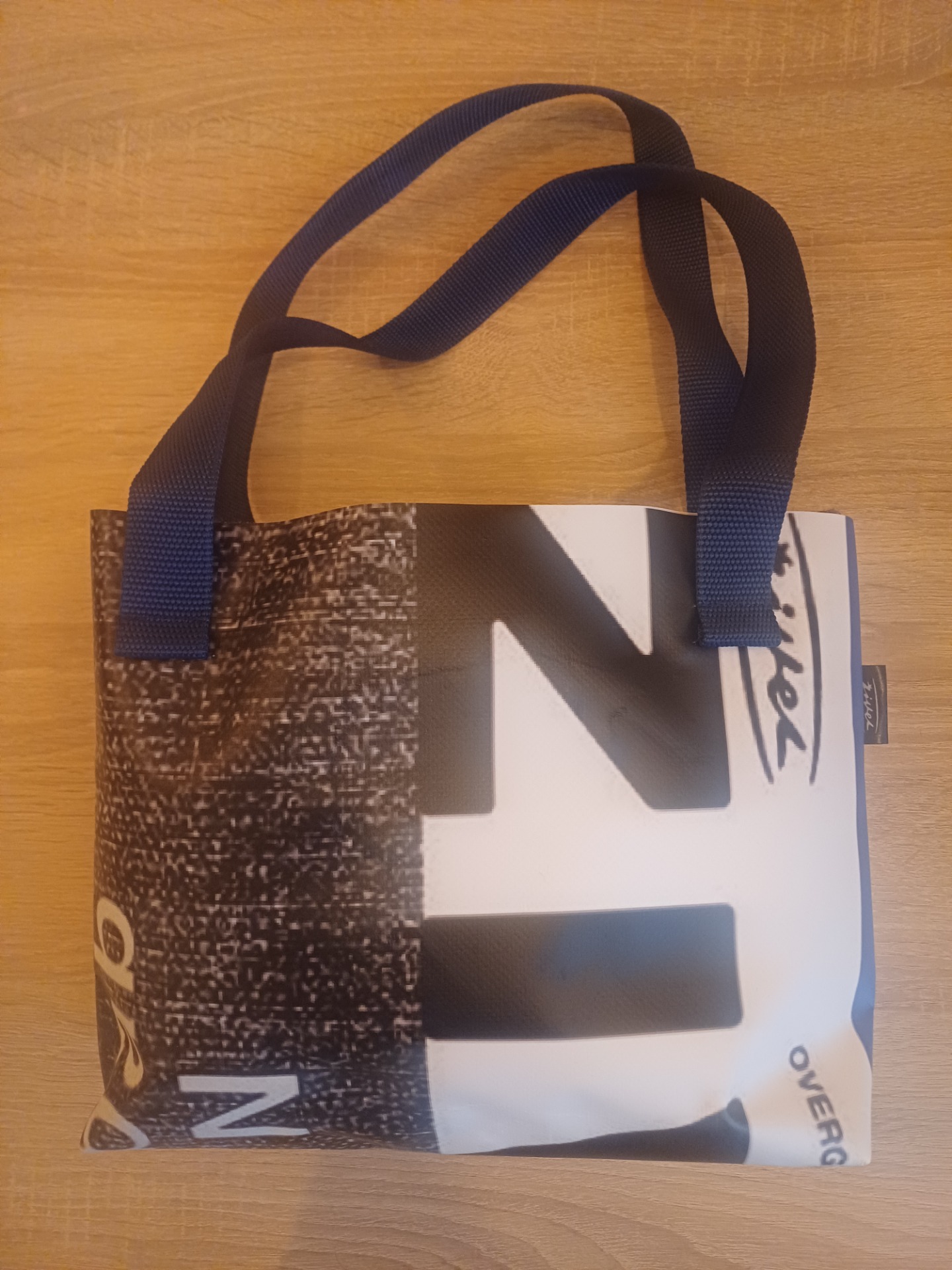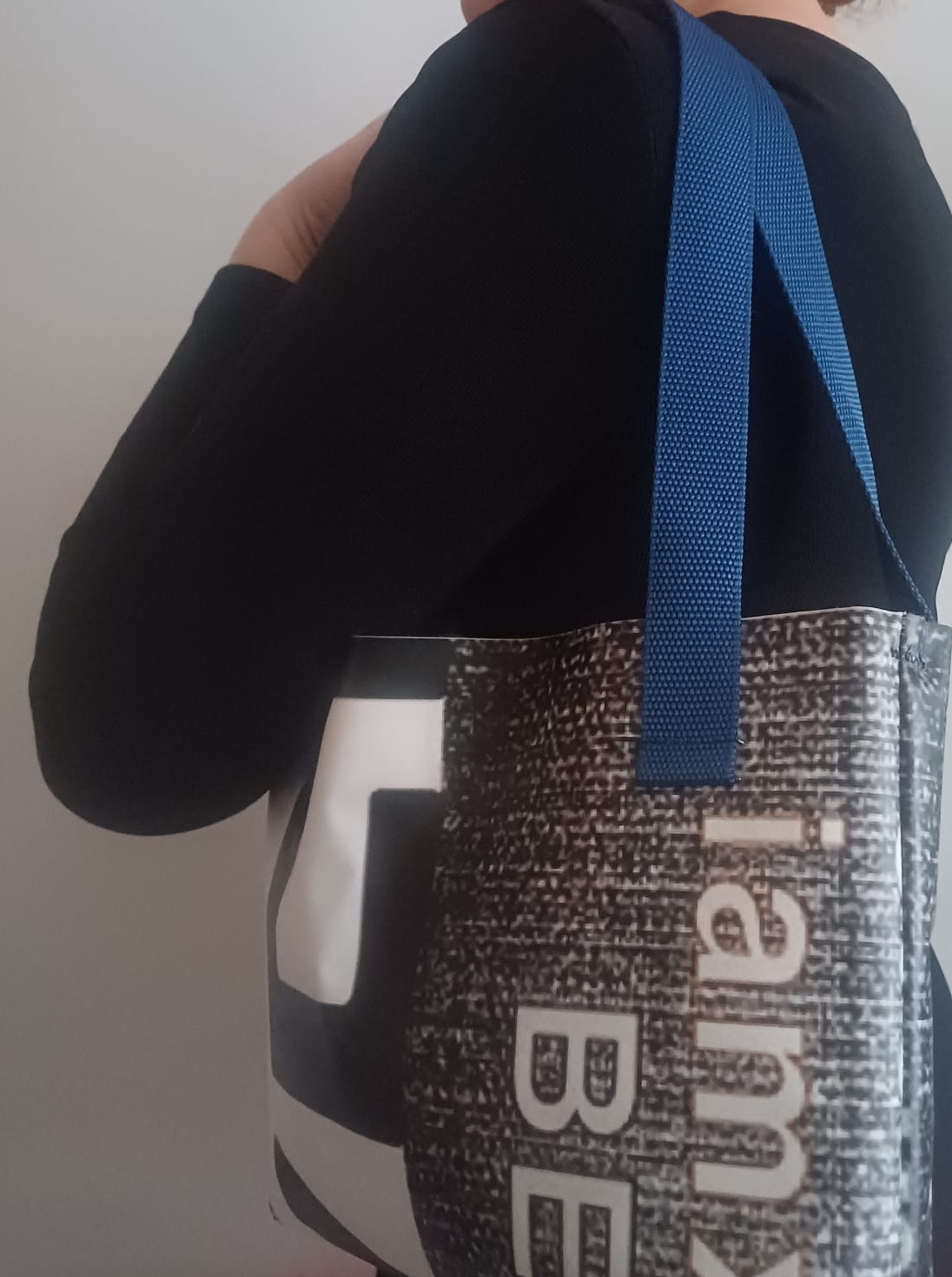 s vnitřní kapsou z šusťákoviny s motivem obálky č. 27 s modrými uchy, délka černých popruhů – 65 cm, úchyt pro karabinu na klíč.