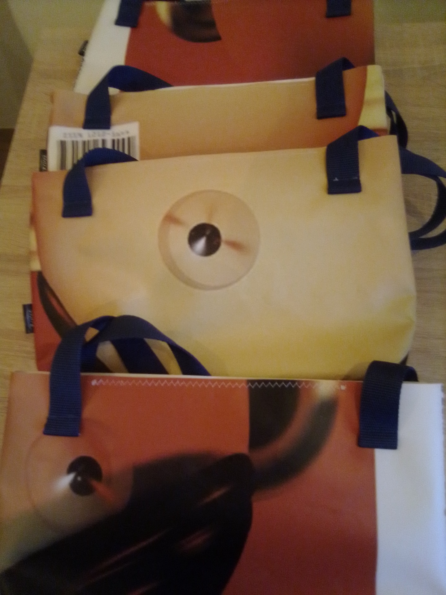 Dámská taška s vnitřní kapsou na zip z banneroviny s motivem obálky č. 18 s černými uchy. Model je vyráběn na objednávku.