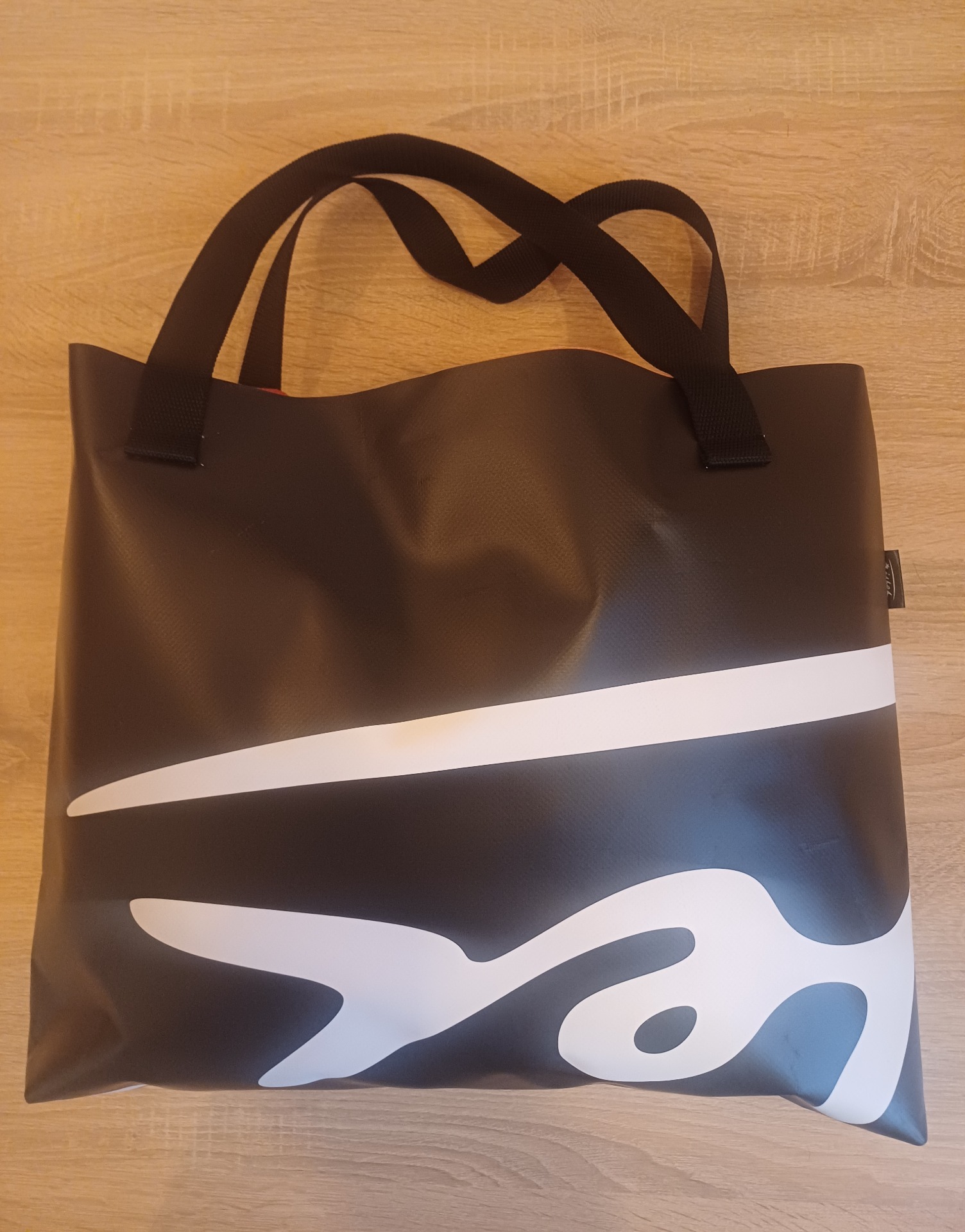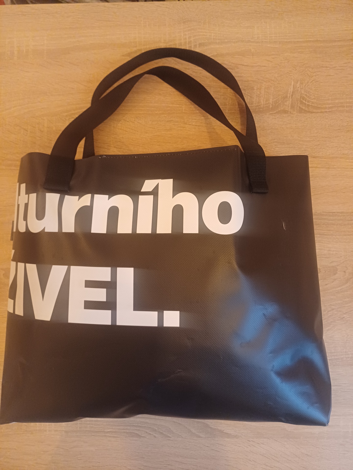 Barva: černá a bíláMateriál: bannerovina, syntetický černý popruhVelikost: 50 x 40 cm